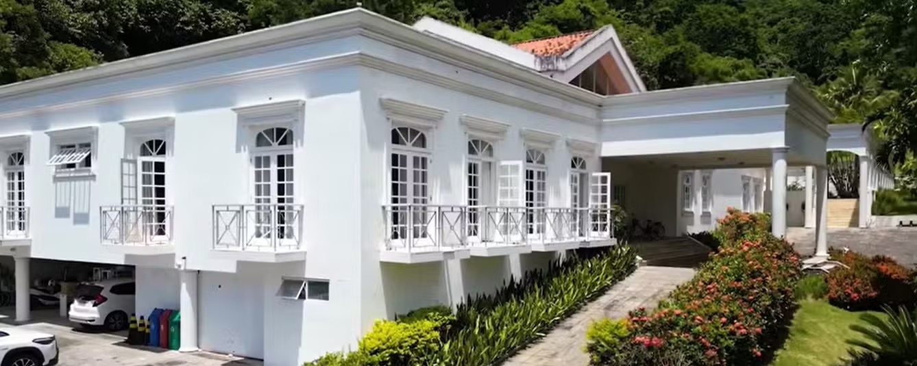 O imóvel dispõe ainda de guarita privativa com controle de acesso, heliponto, ampla sala de estar com cerca de 100 m², biblioteca, dois escritórios, sala de costura, chapelaria, sala de jantar, três lavabos e garagem com capacidade para até 20 veículos.